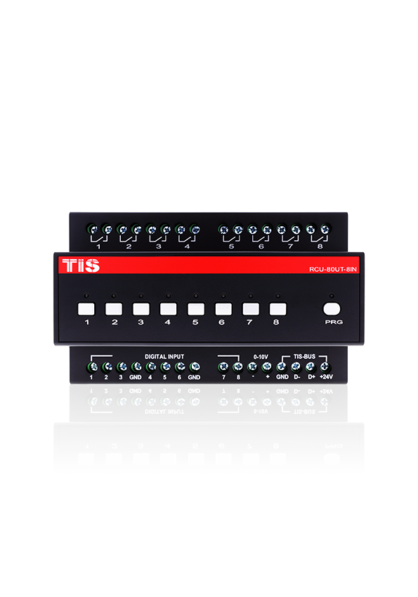 The other two models (i.e., RCU-24R-20Z and RCU8in-8out) have different capacities regarding input and output channels (24 channel output/20 channel inputs and 8 channel output/input with one 0-10V output channel, respectively) and should be chosen based on the scale and necessities of a project.