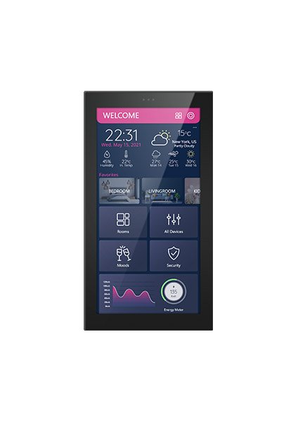 The Saturn 57 is an elegant touch-sensitive interface with a sleek and customizable design that also features a central dashboard for your smart home settings.